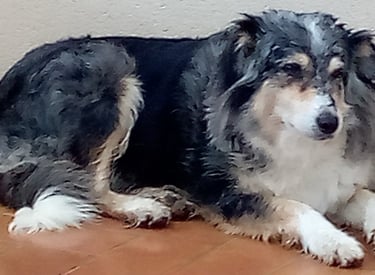 Aujourd'hui, après une énorme adaptation de sa part, elle partage notre quotidien. Elle a quelques difficultés à se laisser approcher par des inconnus, mais reste une chienne très affectueuse et calme.